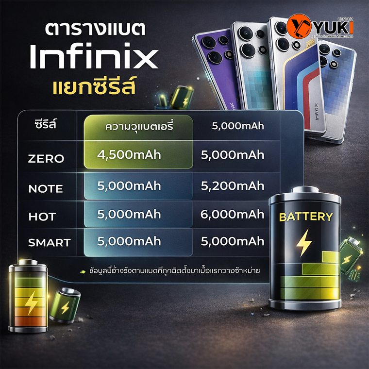 ตารางราคาเปลี่ยนแบต Infinix แยกตามซีรีส์