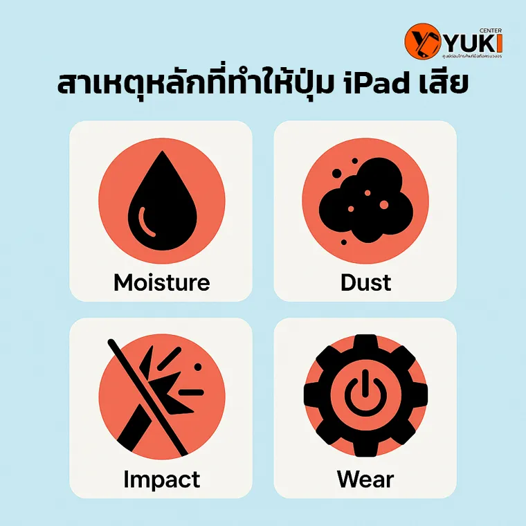 การที่ต้อง “ซ่อมปุ่ม เปิดเครื่อง ปุ่มเพิ่มลดเสียง iPad” มักไม่ได้เกิดจากการใช้งานหนักเพียงอย่างเดียว แต่ยังมีหลายปัจจัยที่ซ่อนอยู่ เช่น